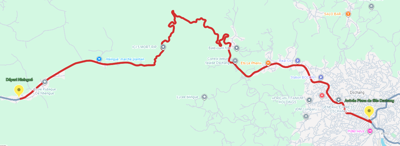 L’arrivée est jugée à l’esplanade de la Place des Fêtes de Dschang, lieu emblématique qui marque l’aboutissement d’un défi sportif intense et mémorable, sous les acclamations du public et dans une ambiance festive.